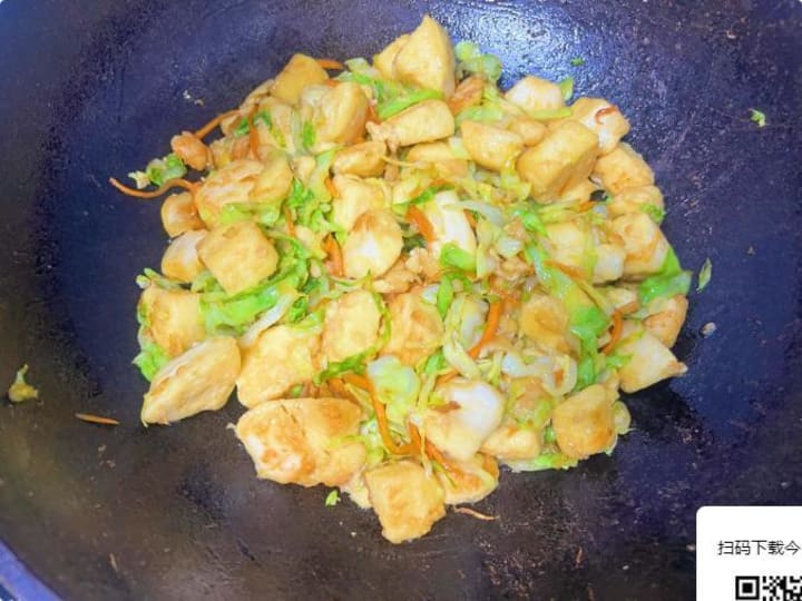 In the same pan (add a bit more oil if needed), turn up the heat to medium-high. Toss in shredded cabbage and thinly sliced carrots (thin cuts cook faster!). The moment they hit the oil, listen for that satisfying sizzle—a sign they’re cooking perfectly. Stir-fry vigorously for 1–2 minutes until the veggies soften slightly but remain crisp, releasing their natural sweetness. Then, immediately add back the golden bun cubes! Toss everything together, season with salt and a light drizzle of soy sauce (just enough for umami, not enough to darken the dish), and give it a final quick stir to blend the flavors. Remove from heat at once!