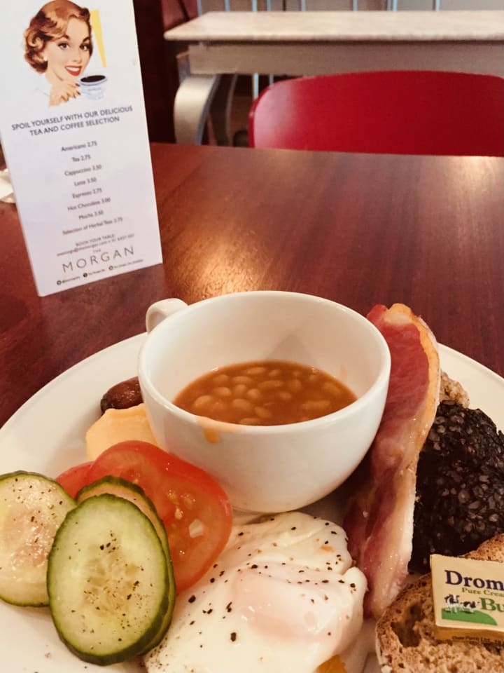 - “Irish breakfast”- This includes not only eggs and black pudding, but thick cut bacon rashers, fried tomatoes, baked beans, sausage and boxty, a dense potatoey bread cut into thin squares. Finally, Guinness. Fun fact: there is literally no time of day it is not acceptable to drink here. Rating: 10/10.