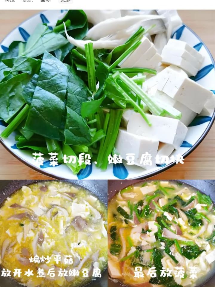 1. Prep: Cube tofu. Rinse spinach and mushrooms. Slice ginger.