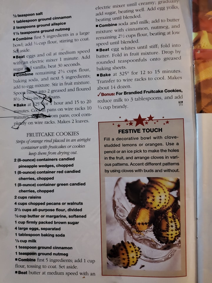 Even though my grandmother had followed her fruitcake recipe many times, she would always find her handwritten recipe and familiarize herself with it all over again. Maybe she knew the process was methodical and that the slightest departure from the recipe would ruin the whole thing.