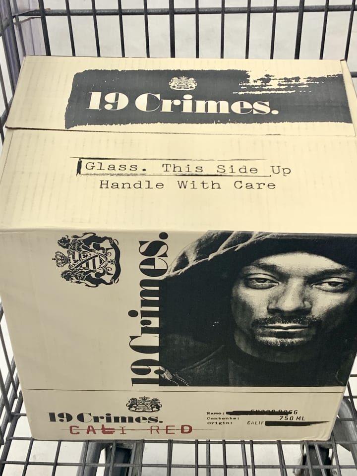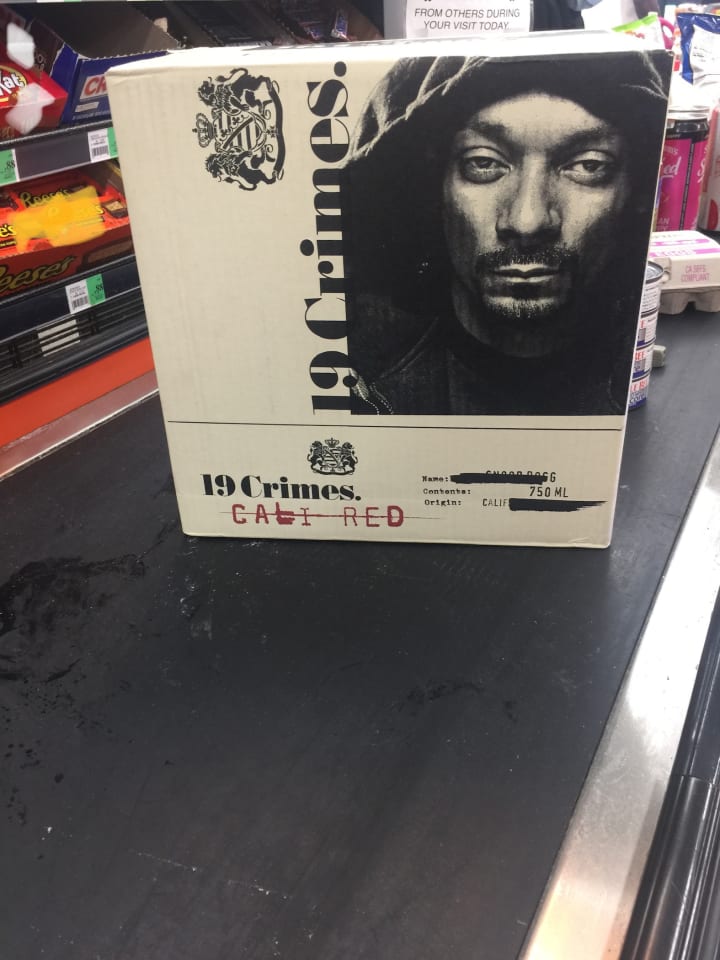 Upon his arrival he spied the bottle on the kitchen counter m, smiled and said“Whaaaat? The homie Snoop is endorsing 19 Crimes?”