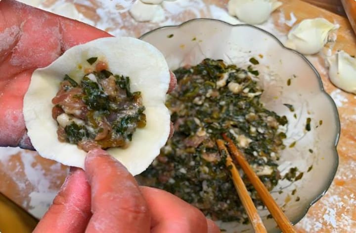 With the filling prepped, all that’s left is wrapping the dumplings. Place a generous spoonful in the center of each wrapper and seal them using your favorite folding technique. To cook, bring a large pot of water to a rolling boil. Gently nudge the dumplings with the back of a spoon to prevent sticking. After the water returns to a boil, add two small cups of cold water (this ensures even cooking). When the dumplings float plumply to the surface, they’re done. Each bite is tender, juicy, and bursting with fresh flavor—absolutely divine!