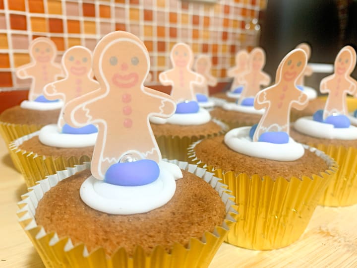 When it comes to decoration, I like to be short and sweet. I don't like spending so much time on just decorating cakes unless they are for an actual celebration because honestly, I don't physically have that much time. But, when I am looking to decorate, I like to make it classy and efficient. I like to use what I have and I like to make it delicious so that it isn't too sweet. As these cakes are sweet and smooth anyway, I do not want to make the cake overly sweet by giving it too much icing. Instead, I used only a bit of icing and a piece of edible paper shaped in a gingerbread man shape for the on-coming Christmas season.