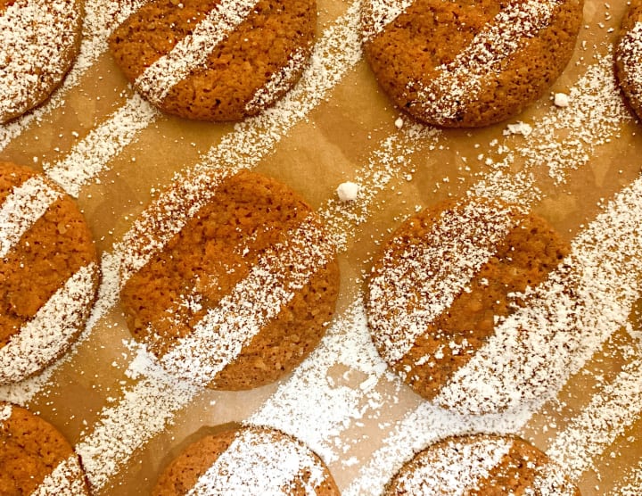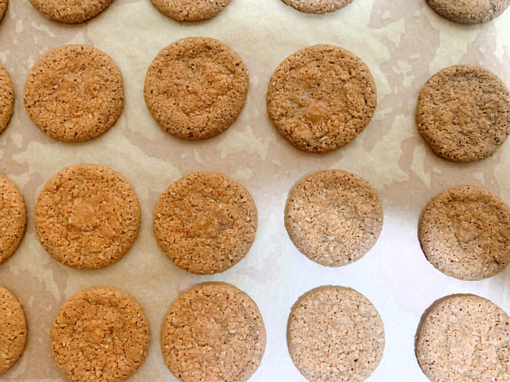 - Preheat your oven to 200C and line a baking tray with parchment paper. Do not use oil to grease it if you don't have parchment paper because this oil will seep into the cookies and disrupt the snapping texture as it cooks