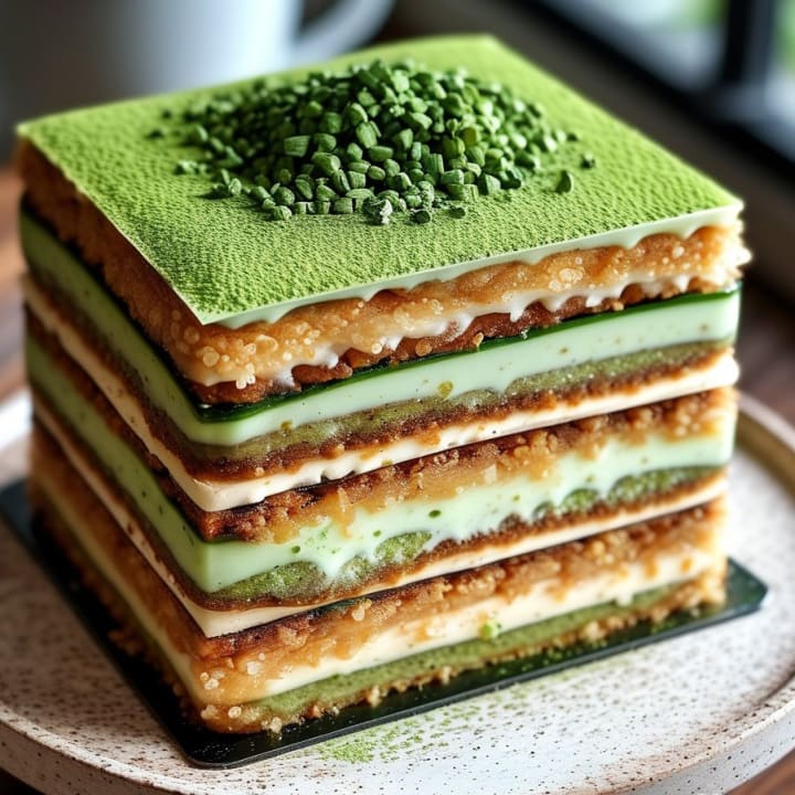 • Dusting: 50% Valrhona cocoa + 50% matcha (sift through silk screen for snow-like fineness).