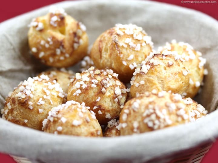 Chouquettes are puff pastries that are studded with secre perle or pearl sugar; coarse sugar crystals. These are Viennese-style baked goods found in bakery shops. They are traditionally eaten for breakfast but can be eaten as an afternoon snack known as le gouter.