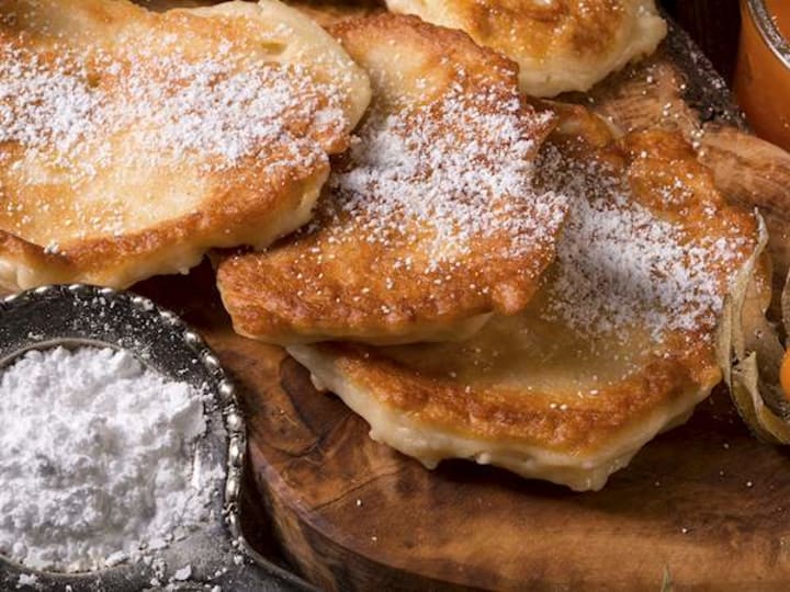 Racuchy is a mix between classic American pancakes and thin crepes. Traditionally these are made with apples but there are also plain varieties. Racuchy are prepared with eggs, milk or buttermilk, sugar, and yeast or baking powder. If used apples are diced or thinly sliced and added last. These range from thick to thin and are pan-fried giving them a crunchy exterior and a soft, elastic center.