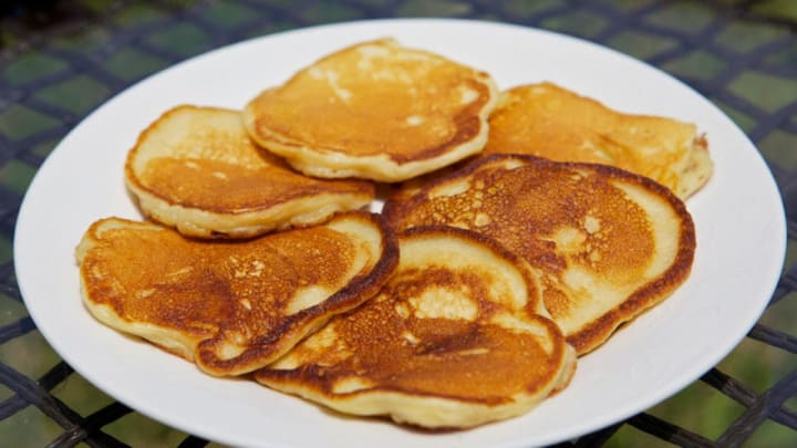 Breakfast Tacos make a traditional breakfast in the Lone Star state. Ingredients like processed yellow cheese, pork, and scrambled eggs are used. The ingredients are cooked and then rolled into a soft taco or spooned into a hard shell taco.