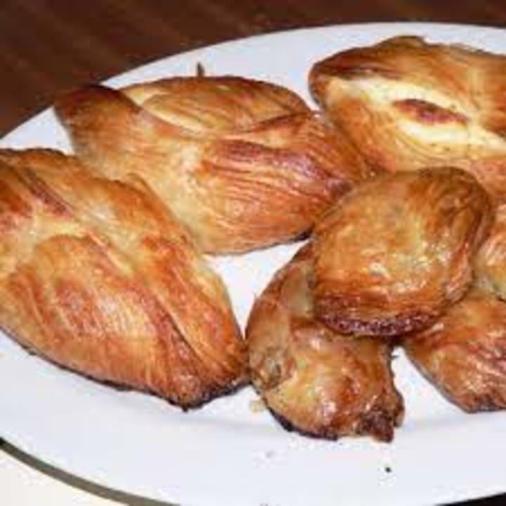 Pain aux raisins or escargot (lit. snail) is a spiral-shaped pastry that is made with leavened buttery dough or sweetened bread dough, raisins, and creme patisserie. When filled it is baked until the edges are golden. The sweet bread is traditionally served for breakfast and at other times of the day accompanied by cafe latte or black coffee.