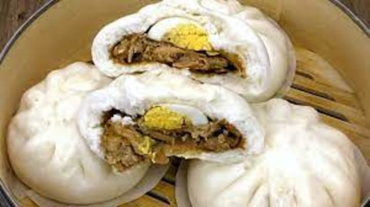 Big pao is a variety of baozi, the famous Chinese steamed buns. The pastry is made with yeasted dough, that develops a tender and springy texture when steamed. The filling is usually a combination of minced meat, mainly pork or chicken, shitake mushrooms, and green onion is a fragrant sauce consisting of soy sauce, oyster sauce, and sesame oil.