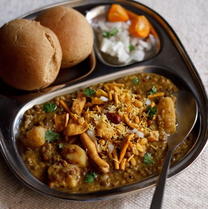 Misal pav is a traditional dish from Maharashtra. It is a dish with two main components - misal which is a curry made with sprouted moth beans and topped with chives, onions, chilis, and potatoes and pave which are bread rolls used to soak up the curry. It can be eaten for breakfast, as a snack, or a main meal.