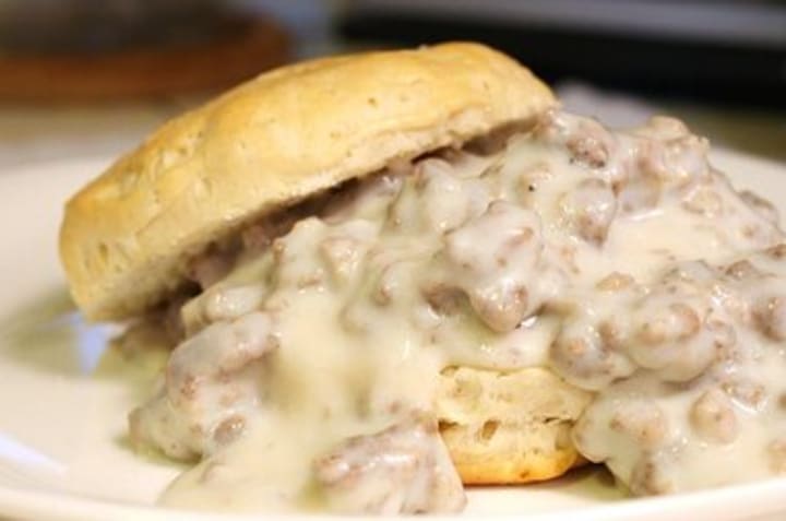 A popular breakfast dish not only in the southern state but all across the US is biscuits and gravy. It is prepared with tender dough biscuits that are covered by a thick gravy made from the drippings of pork sausages, flour, and milk.