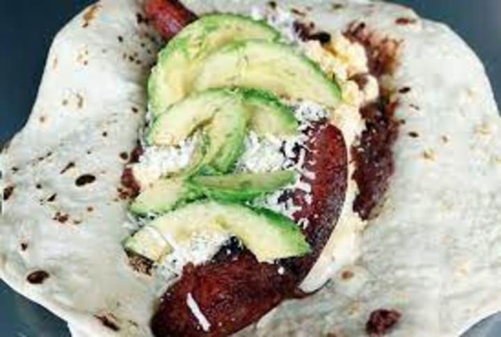 Baleada is a dish that is prepared with a thick wheat flour tortilla filled with mashed fried beans and other ingredients like cheese, eggs, avocados, hot sauce and Honduran-style sour cream known as mantequilla.