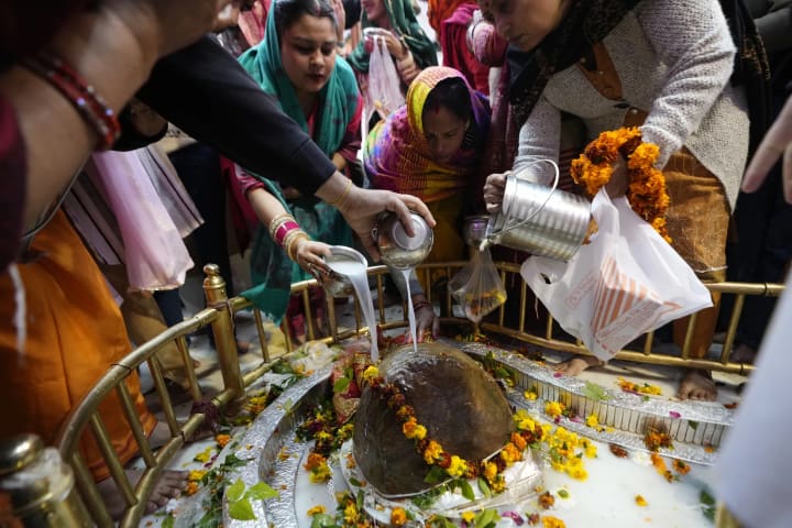 At the heart of the rituals is the worship of the Shiva Lingam, a symbolic representation of the deity’s infinite nature. Devotees pour milk, water, honey, and curd over the Lingam, chanting mantras like "Om Namah Shivaya," which reverberates through the air. Bilva (bael) leaves, considered sacred to Shiva, are offered in abundance, their trifoliate shape symbolizing the three aspects of existence—creation, preservation, and destruction. In many households, a small Lingam or idol is set up, adorned with flowers and sandalwood paste, as families gather for prayers.