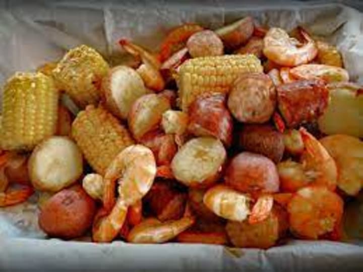 Frogmore stew is a classic dish with the main ingredients being fresh shrimp and freshly shucked yellow corn simply boiled and ingredients like potatoes, crabs, or sausage added.