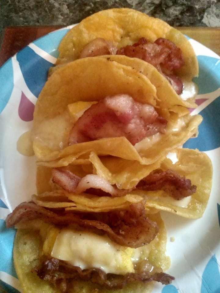 Brunch tacos - For those of you in love with Taco Tuesday..here is quick fix that you really can make for anytime..I would say pass the Mimosas but no alcohol until after work..unless you work in a bar, or make six figures.