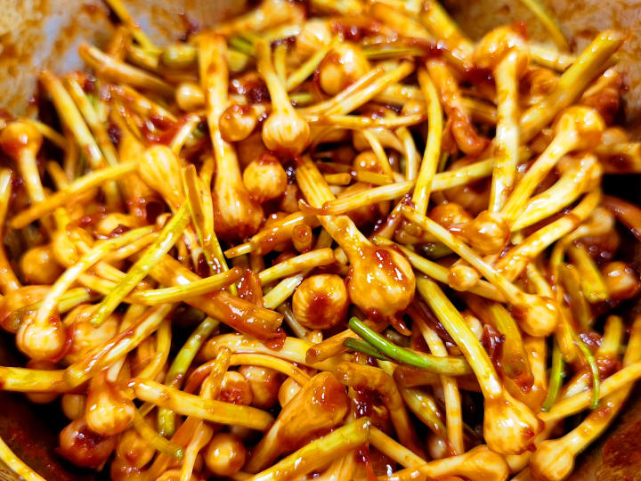 1. Clean wild onions thoroughly. Air-dry, then chop into 5cm sections. Massage with salt to draw out moisture.