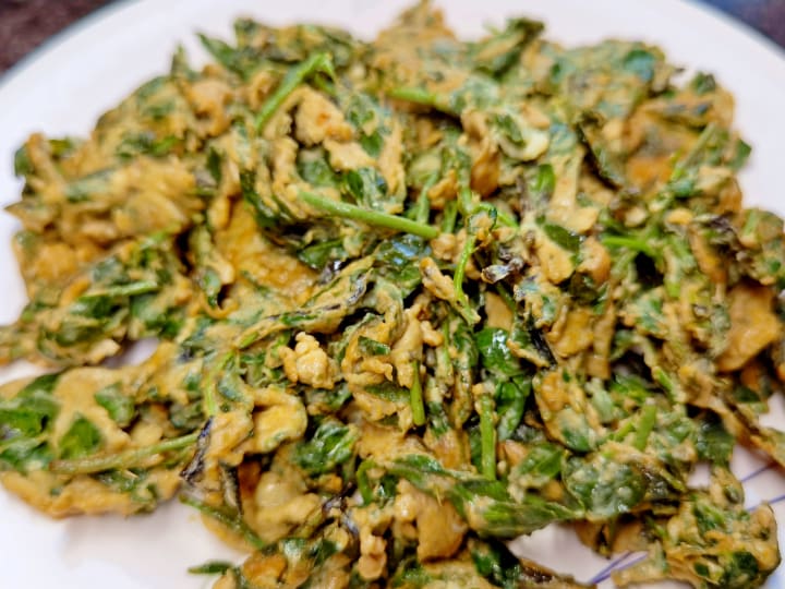 1. Blanch leaves in boiling water for 10 seconds (to reduce bitterness). Drain, chop finely.