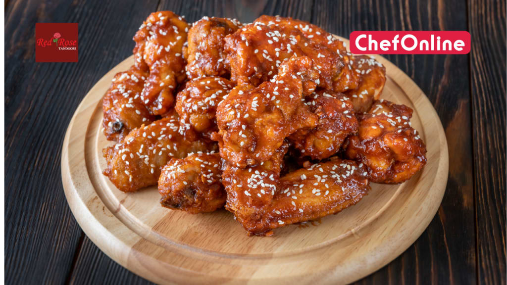 Crispy, spicy, and slightly tangy, Chicken 65 is a street food legend across South India—and now, a firm favourite at Red Rose. Tender pieces of marinated chicken are deep-fried until golden and tossed in a fiery red masala featuring mustard seeds, garlic, curry leaves, and green chilies.