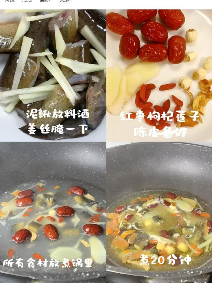Loach’s nourishing properties blend with ginger and tangerine peel’s warmth to expel dampness, while red dates and lotus seeds strengthen the spleen. The broth turns creamy white-gold—rich, savory, and utterly non-fishy!