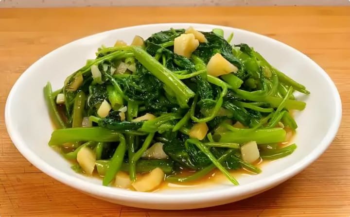 Why it Works: Water spinach is a "Roughage Powerhouse!" Garlic’s kick and high heat create a crisp-tender bite. Its unique fiber structure effectively bulks up stool and stimulates peristalsis (intestinal movement) for prompt results. Its superb heat-clearing properties make it summer’s "Green Flash" – swiftly resolving traffic jams in your gut!