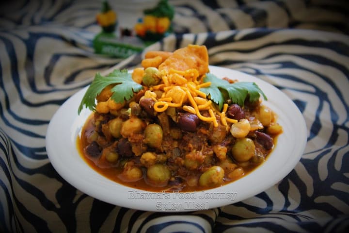 Misai is a specialty dish of the Indian state of Maharashtra. It is prepared with curd, pav, moth bean or pea curry, gravy, spiced potatoes, and garnishes like onions, coriander, and tomatoes.