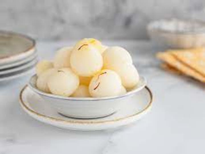 Rasgulla is prepared with chhena paneer dumplings and semolina dough cooked in a sugary syrup.