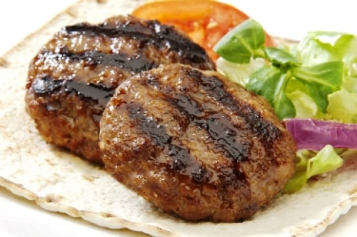 Biftekia is a dish that is a cross between burger patties and flattened meatballs. The patties are made with ground pork, beef, or lamb and combined with onions, breadcrumbs, eggs, and herbs like mint and oregano. Then the patties are fried in hot oil but can also be grilled, They're served with fries, red onions, or cooked vegetables.