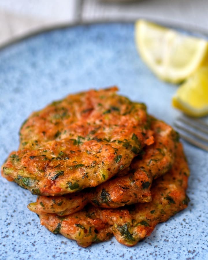 Delicious tomato fritters are made with diced tomatoes with onions and fresh herbs. Grated zucchini and feta can be added. The fritters are combined and fried.