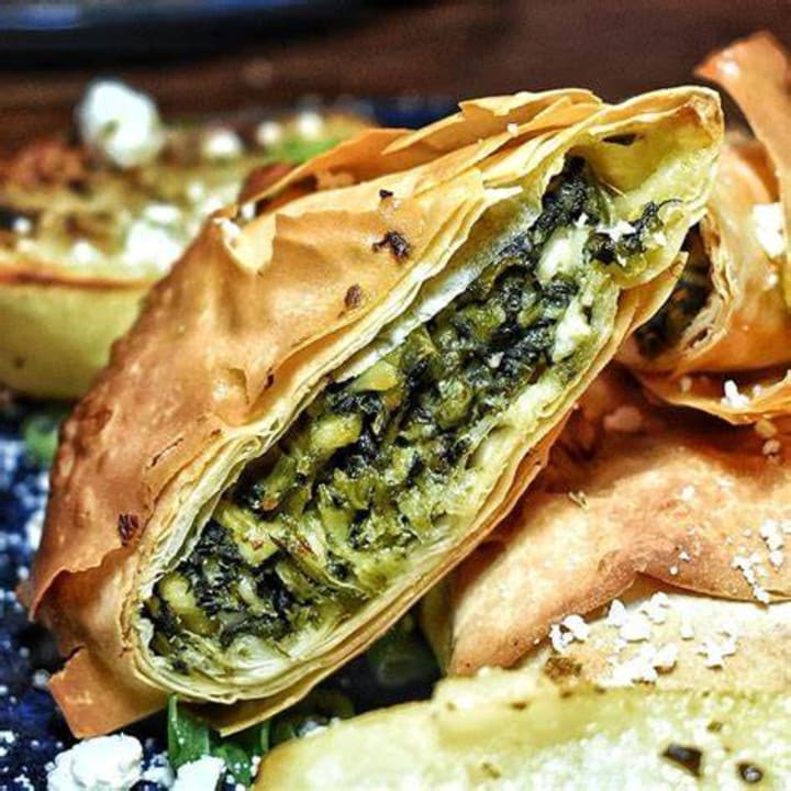Hortopita is derived from the Greek words horta meaning wild greens, and pita, meaning pie. This is a savory pastry that is filled with a variety of wild or cultivated greens, The pastry is made with phyllo dough, and the filling consists of aromatic herbs, crumbled cheese like feta, and at times eggs.