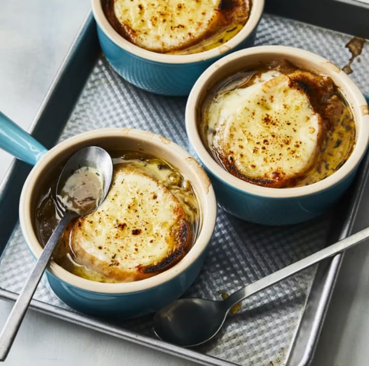 9. Classic French Onion Soup: This rich and flavorful soup is made with caramelized onions, beef broth, and a variety of other ingredients. It's a classic French dish that's perfect for a cold winter evening.