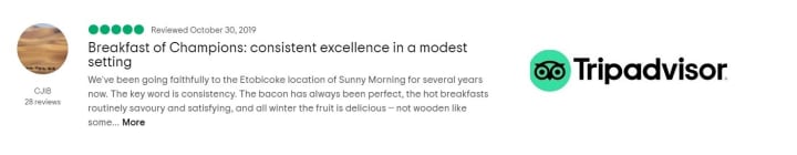 The food is delicious. Portions are just right. Service is pleasantly attentive, and no overzealous check-ins. The coffee refill is fantastic. The Interior is clean, bright, and nicely decorated. It is not a big restaurant, but there was enough distance between tables for privacy. It all made our breakfast experience enjoyable.