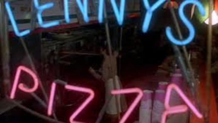 As Tony returns to his cool strut he has two slices of pizza in his hand. Now, as a pizza connoisseur this has my attention, he has a paint can in one hand and orders two slices of pizza. Pizza is not the cleanest of foods, it tends to be greasy, the sauce can drip after a bite or two, depending on toppings, the toppings can pop off dribble down the front of you, it’s a task just to keep pizza together on a good day and this guy is walking down the street carrying two slices of pizza on a small bed of napkins.