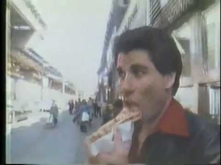 Two or Three???? The staggering implication here is that sometimes, Tony Manero, while walking to work at the paint store, will get THREE giant slices of pizza and eat them all at once while walking down the street in New York City, the single most crowded and busy streets on the planet. This is insanity. This is so insane to my Midwestern, Iowa soul that I had to write this down as some form of therapy before I could continue watching Saturday Night Fever.