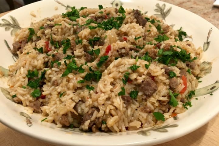 Arroz carreteiro or wagoner's rice is a hearty rice and meat dish that originated in the south of Brazil, The dish was prepared by gauchos who traveled around and needed nutritious meals. During that time the dish was prepared with dried beef but today it can also be prepared with barbeque leftovers.