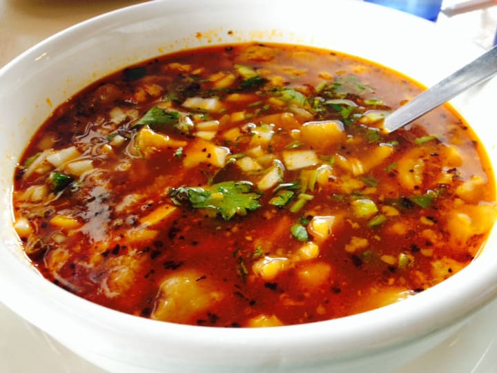 Menudo is a soup that is a combination of garlic, onion, chili, hominy corn, and tripe. The dish comes from the northern area where farmers prepared it from leftover parts of cows.
