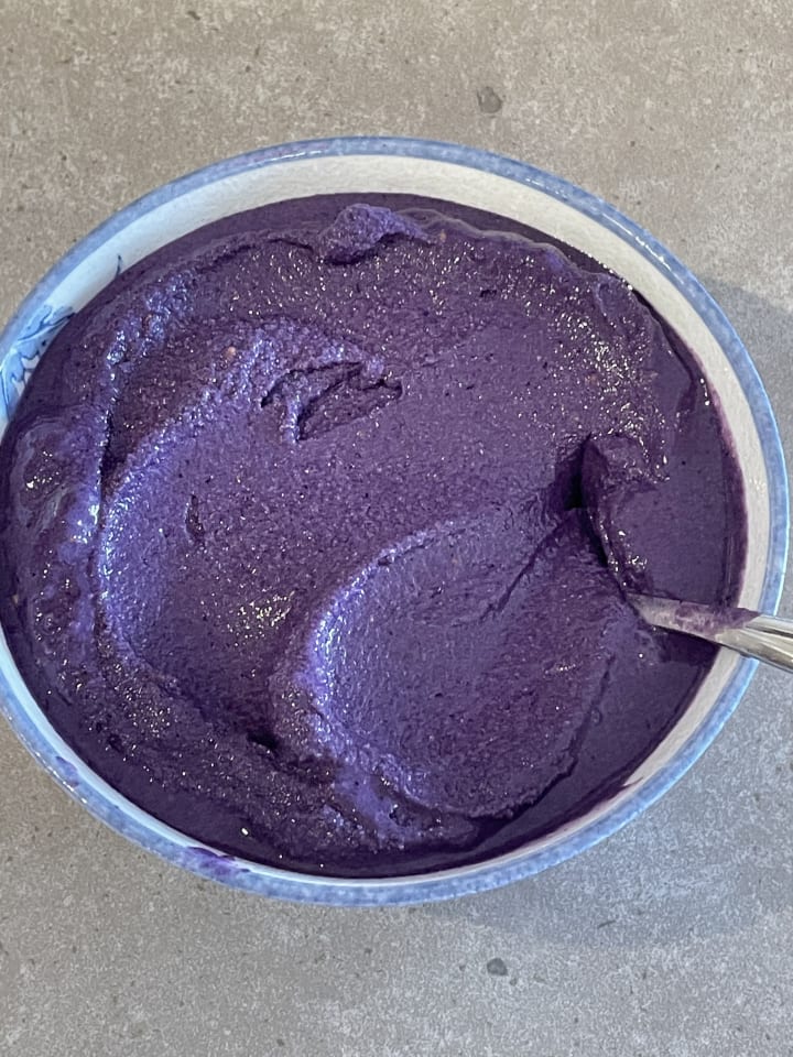 For those of you who don't know, ube is what Filipinos call purple sweet potato. It's a little similar to Japanese taro. Ube has been one of my favourites for the last several months! Since I’ve been addicted to ube flavoured smoothies and smoothie bowls, I decided to purchase ube extract from the local Asian market in my area. I love frozen blueberries and frozen blackberries, so I believed that inventing a new flavour by incorporating frozen blackberries, frozen blueberries and ube extract would be a creative thing to do!