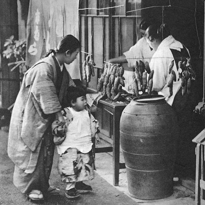 As yaki-imo became a staple winter food for low-income areas, sweet potato specialty stores and vendors boomed in the early 20th Century. But in 1942, the wartime Staple Food Control Act rationed the sale of various foods, including rice and sweet potatoes, and many sweet potato shops were closed. Nevertheless, they became a key staple during World War Two, when crops like wheat and barley were even scarcer. "Sweet potato flour was used as a substitute for wheat flour," Rath explained. "From 1944, public lands were converted into potato patches, and sweet potatoes would replace the meagre rice allotments in public rations by 1945."