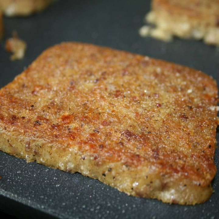 From the Pennsylvania Dutch also comes food such as scrapple. It is also known by the Pennsylvania Dutch name pon haus. Traditionally it is a mush of pork scraps and trimmings which have been combined with cornmeal and flour, often buckwheat flour and spices. It is then formed into a loaf and slices of the scrapple are pan-fried before serving. It is best known as a regional American food from the Mid-Atlantic states. Scrapple may be found in supermarkets in both fresh and frozen form.