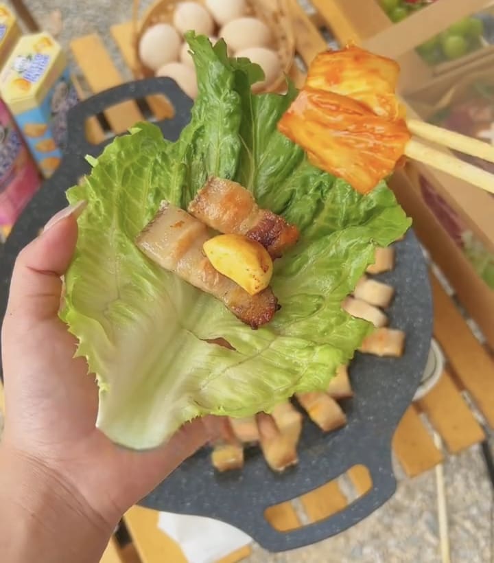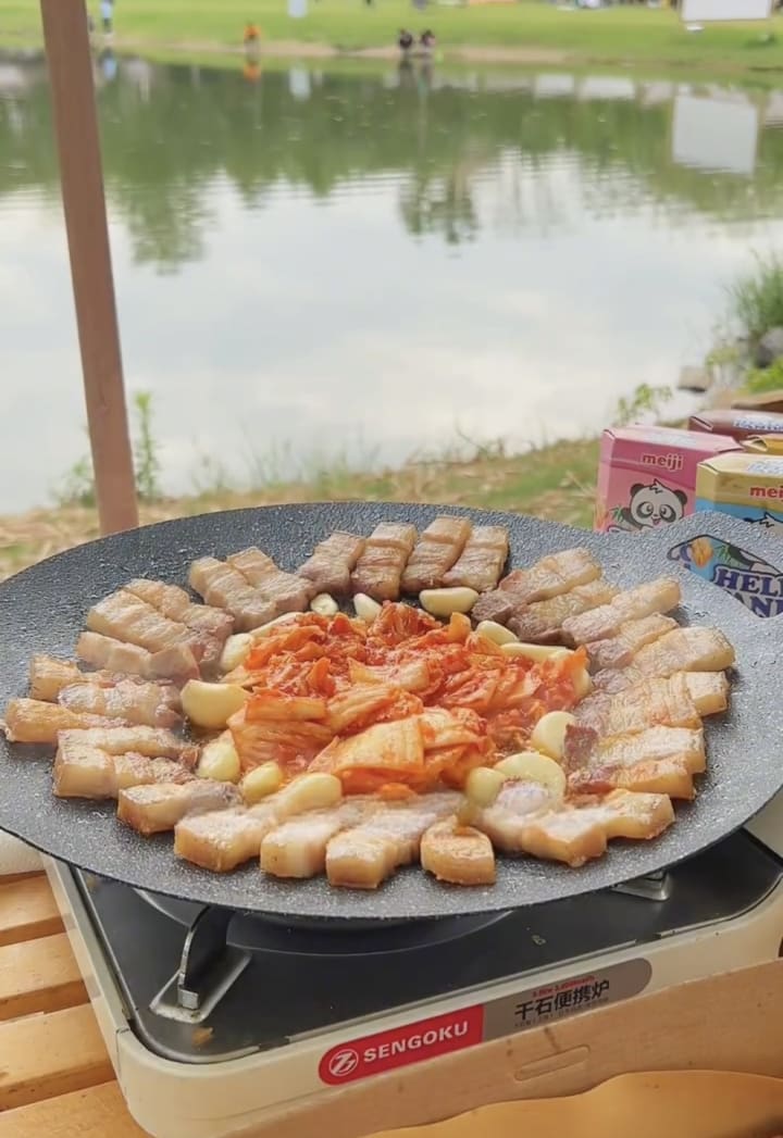 Among all camping foods, kimchi grilled pork belly is the most irresistible — you love it and hate it at the same time.