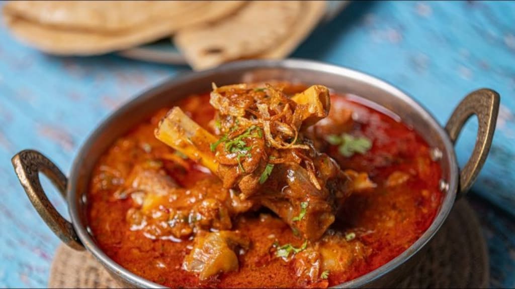 The dish originated in the Mughal era in India and was popular among the Muslim aristocracy. It was traditionally prepared with slow-cooked beef shank or lamb and a variety of spices. Over time, the dish spread to other regions of India and Pakistan and evolved to include regional variations.