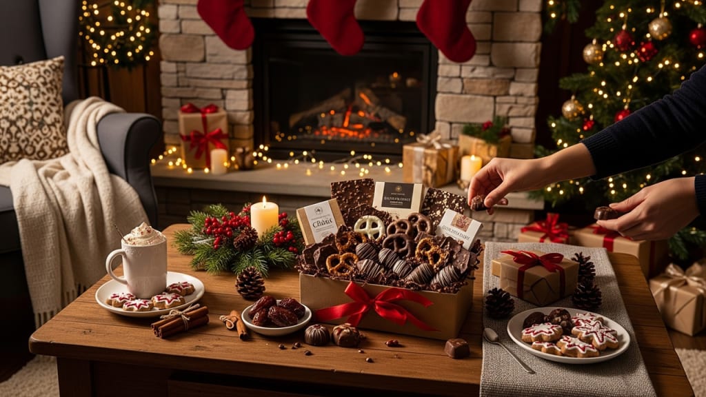 The holiday season has a way of slowing time down. Picture this: a fireplace crackles in the corner, soft carols hum in the background, wrapping paper is scattered across the living room floor, and the air smells faintly of cocoa and cinnamon. Amidst all this cozy chaos, a small chocolate gift basket sits on the counter, catching the twinkle of fairy lights.