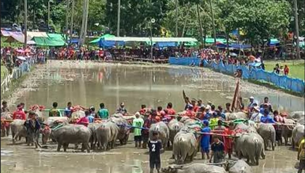 As the morning sun colored the sky with orange and pink hues, I stood amidst the hustle and bustle of the crowd, feeling a mixture of excitement and nervousness in my brain. Walking out outside my house to feel the fresh air of competition, breath with free and courage. Prepare for everything needed, included several buffalo that have been trained and prepared for the competition. With all the thing buffalo accessories pray for the tournament. It is a day where a tradition is deeply embedded in the culture of our village. My heart beats fast as I glance at the majestic buffalo lined up, their muscles quivering with strength and determination. We have been prepared long time as a proud becoming participant of the tournament. Arrived in the field of battle, the buffalos roar turn hit into the souls, increasing the spirit and proudness. The mud didn't stop us from fighting. Every now and then I stroke my buffalo as a symbol that we are partners in this race