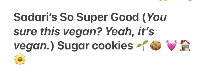 Have you ever had a taste for something sweet but you just didn’t have it in your kitchen? Yeah, I think we all have. Well, that is what led me to make my delicious sugar cookies. It was a fall evening In November, and I remember my sister and I expressing how much we were both craving sugar cookies. Now, I know what you might be thinking, anyone else would’ve just gone to the store and bought them. Problem solved… right? Well, not really. Since we are vegans, it wasn't that easy. In fact, it started becoming frustrating to us that there weren’t any restaurants or bakeries near us that sold vegan treats.