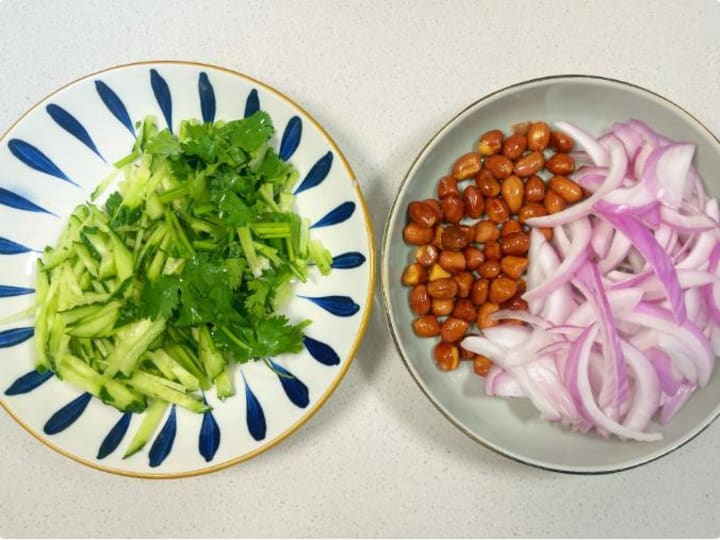 • Cucumber offers crispness, onion delivers subtle sweetness, and peanuts provide satisfying crunch.