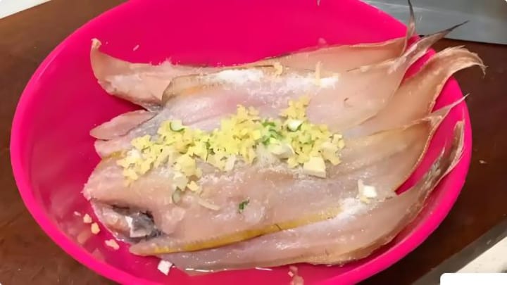 1. Soak cleaned fish in chilled ginger-scallion broth (20 minutes minimum)