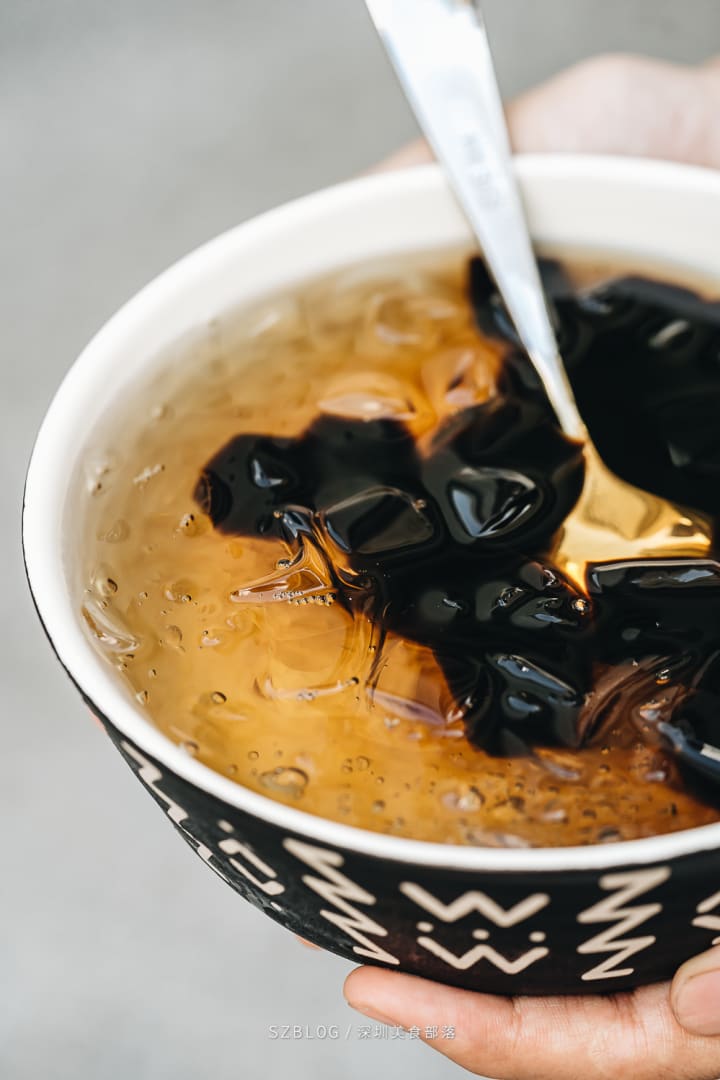 Next up is Grass Jelly, also known as Xiancao (仙草) in Chinese, a delicacy made from the leaves of the mesona plant. Its recipe closely resembles that of Seaweed Jelly. The plant boils to extract its gel, while a small amount of starch and baking soda enhances its smoothness and springy texture. The jelly then chills and solidifies into a dark, jelly-like substance.