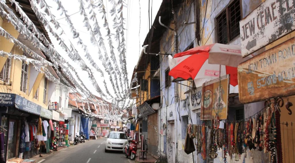 At the other end of the country, Mattancherry is a tiny locality south of Kochi on the Kerala coast that's home to Jew Town, a mishmash of a few streets with shops selling antiques, spices, knickknacks and local handicrafts, interspersed with cafes and eateries. At the end of Synagogue Lane is the 17th-Century Paradesi (foreign) Synagogue, built with sloped tiled roofs, blue and white willow-patterned tiles, Belgian chandeliers, Jewish symbols and four scrolls of the Torah.
