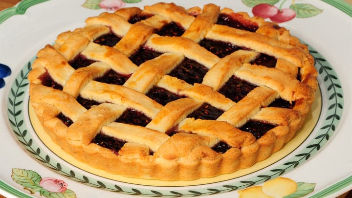 Linzertorte is a short, cake named after the city of Linz. The cake has a crumbly, butter pastry shell enhanced by lemon juice, cinnamon, and almonds, walnuts, or hazelnuts. This delectable cake is filled with redcurrant jam, but raspberry or apricot jam can be used. The top of the cake has a lattice crust giving it a unique appearance.