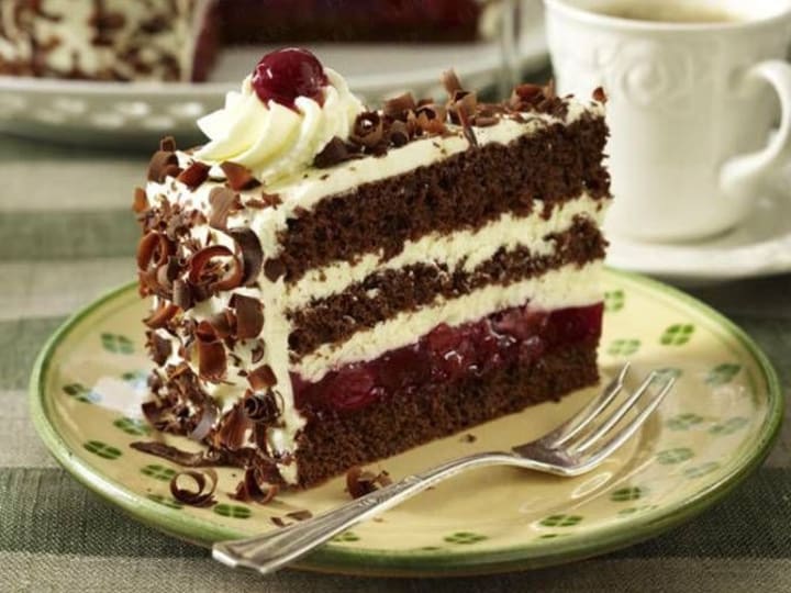 Schwartzwalder Kirschtorte is a popular German dessert known as Black Forest Cherry Cake. The cake is a combination of chocolate sponge cake coated in whipped cream and dotted with kirschwasser-infused cherries. Some versions use kirschwasser brandy to soak the chocolate layers or flavor the whipped cream. Once assembled, the cake is decorated with whipped cream, chocolate shavings, and cherries.